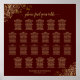 Cette belle carte de sièges mariages contient de l'espace pour 220 noms à 22 tables. L'élégante conception de l'auburn ou du chocolat et de l'or comporte un titre de calligraphie script, et des remplissages de dentelle en faux feuille doré dans les coins. Une façon merveilleuse d'aider vos invités à trouver leurs tables tout en ajoutant classe, élégance et style à votre réception de mariage.