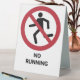 Nos panneaux de tente disponibles à partir de Zazzle, y compris ce panneau d'interdiction "No Running" ISO 7010, sont conçus pour améliorer la sécurité et alerter les individus à des comportements interdits ou restreints et des dangers potentiels dans divers milieux. Chaque signe d'interdiction ISO 7010 comporte un cercle rouge reconnaissable avec une diagonale rouge sur un arrière - plan blanc, accompagné d'un pictogramme noir normalisé, indiquant clairement les actions "ne pas faire". Parmi les exemples les plus populaires figurent les panneaux "No Smoking", "No Photography", "Not Drinking Water" et "No Open Flame". Ces signes importants servent d'outils essentiels pour identifier les risques et avertir les individus, réduire efficacement les dangers et promouvoir les mesures de sécurité. Avec une conformité ISO 7010 complète, nos panneaux répondent aux normes internationales de communication des dangers tout en offrant une conception audacieuse et attrayante qui se distingue dans tout environnement où des risques peuvent être présents. En affichant ces panneaux d'interdiction Non à l'exécution de façon importante dans les zones désignées, vous pouvez communiquer efficacement les dangers potentiels et encourager un comportement responsable. Leurs messages clairs et concis aident à sensibiliser les employés, les clients, les visiteurs ou le public à prendre les précautions nécessaires. Cette approche proactive minimise de manière significative la probabilité d'accidents, la protection des vies, des biens et de l'environnement. Faites confiance à nos panneaux de tentes personnalisables pour améliorer vos protocoles de sécurité et maintenir la conformité aux règlements de l'industrie. Vous pouvez personnaliser le texte pour spécifier la nature du danger ou le traduire dans d'autres langues, selon les besoins. Ces panneaux portatifs No Running sont particulièrement utiles dans les écoles, les musées, les bibliothèques, les piscines ou tout endroit où la course peut présenter un risque pour la sécurité. La conception de la tente permet une installation et une réinstallation aisées, ce qui les rend idéales pour des événements temporaires ou des environnements changeants où le comportement des piétons doit être contrôlé pour des raisons de sécurité.