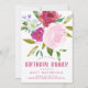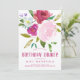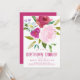 Une jolie invitation à dîner d'anniversaire, audacieuse et moderne, en rose et vert, avec un bouquet floral aquarelle surdimensionné et une police de style lettré. Le dos est en rose vif.