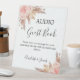 Une arrière - plan blanche design. Décoré de fleurs roses d'or et de rose, de roses et d'herbe de pampas. Personnalisez et ajoutez un texte et vos noms.