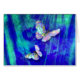 Deux papillons colorés se levant hors d'une atmosphère surréaliste, ressemblant à un tourbillon et à des axes de lumière environnante. L'arrière - plan est dans les tons de bleu, de pourpre, et de bleu-vert.