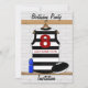 Noir et blanc cerceaux avec règles aussie football suspendu dans un vestiaire entièrement personnalisable avec votre propre nom et numéro. au contraire, changez simplement les détails de votre propre fête pour créer des invitations uniques de fête d'anniversaire de football. Grand cadeau pour n'importe quel joueur de footy aussie règles, ou aussie règles fan de football. Nous pouvons faire ce produit dans n'importe quelle combinaison de couleur jersey juste contactez-nous par l'intermédiaire de la boutique giftsbonanza