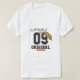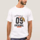 Cette image montre un homme vêtu d'un t-shirt à col d'équipage blanc à manches courtes, au design graphique audacieux et stylisé. L'élément central du design est le grand numéro "09" dans une police épaisse, noire et bloquée avec un contour blanc, rappelant les numéros de maillot de sport.