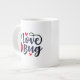 Jumbo Certains jours, une tasse de joe de taille régulière ne le fera pas. Quand vous avez besoin d'une dose de caféine en plus, utilisez votre tasse XL de Zazzle. Peut contenir jusqu'à 591 ml. Idéal pour des soupes, céréales, glaces et du chili aussi ! Cette tasse géante à une anse en forme de C pour une utilisation confortable. Dimensions : Hauteur : 4,5" Diamètre : 3,9" Capacité : 20 onces Micro-ondes et lave-vaisselle sans danger Construction solide et céramique Satisfait aux exigences de la FDA en matière de salubrité des aliments et des boissons Imprimé sur demande à Reno, NV