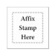 Les mots "Affix Stamp Here" dans un carré avec des lignes faites de tirets. C'est l'endroit où vont les timbres-poste.