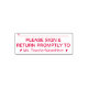 Cette conception d'estampille en caoutchouc clair comporte le message "VEUILLEZ SIGNER ET RETOURNER RAPIDEMENT À", ainsi qu'une ligne pour une signature ou des initiales à écrire ci-dessus. Il dispose également d'un nom de tuteur personnalisé. Il pourrait peut-être être utilisé par un éducateur, un tuteur ou un enseignant pour demander à ses parents ou tuteurs de vérifier le travail de l’élève lors d’un test, d’un quiz, d’un projet ou d’une autre affectation scolaire.