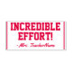 Ce design inspirant d'estampille en caoutchouc comprend le message de rétroaction motivant "EFFORT INCROYABLE !" et le nom d'un enseignant, d'un éducateur ou d'un tuteur personnalisé. Il pourrait être utilisé par un enseignant, un éducateur, un instructeur ou un tuteur pour marquer les affectations, pour indiquer qu'un étudiant a bien fait.