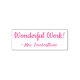 Ce design inspirant d'estampille en caoutchouc comprend le message inspirant "Merveilleux travail!" et le nom d'un éducateur customisé. Il pourrait être utilisé par un enseignant, un éducateur ou un tuteur pour marquer les affectations, pour indiquer que l'étudiant a fait un excellent travail.