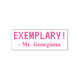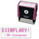 Ce design inspirant de timbres en caoutchouc comprend le message motivant "EXEMPLAIRE !" et le nom d'un éducateur personnalisé. Il pourrait être utilisé par un enseignant ou un éducateur pour évaluer le travail des étudiants, pour reconnaître qu'un étudiant a fait un travail exceptionnel.