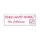 Ce design de timbres en caoutchouc encourageant comporte le message de motivation "TRÈS BON TRAVAIL !" et le nom d'un enseignant customisé. Il est également doté d'une coche décorative. Il pourrait être utilisé par un enseignant ou un éducateur pour marquer les affectations, pour reconnaître que l'étudiant a bien fait.