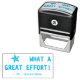 Ce design amusant de timbres en caoutchouc comprend le message positif "QUOI UN GRAND EFFORT !" et le nom d'un enseignant ou d'un éducateur sur mesure. Il est également décoré en étoile. Il pourrait être utilisé par un enseignant, un éducateur ou un tuteur pour évaluer le travail des élèves, pour indiquer qu'un étudiant a fait un travail exceptionnel.