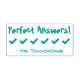 Ce design de timbres en caoutchouc encourageant comprend le message de rétroaction encourageant "Réponses parfaites !" et le nom d'un enseignant personnalisé. Il dispose également d'une icône de coche décorative. Il pourrait être utilisé par un enseignant, un éducateur, un instructeur ou un tuteur pour marquer les affectations, afin de reconnaître que l'étudiant a bien fait.