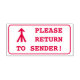 Ce modèle de tampon en caoutchouc comporte le message "RETOUR À L'EXPÉDITEUR !", ainsi qu'une forme de flèche décorative. Il pourrait être utilisé pour indiquer que le courrier reçu a été livré à la mauvaise adresse et doit être retourné à l'expéditeur.