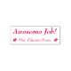 Ce modèle de tampon en caoutchouc encourageant comporte le message inspirant "Travail génial !" et le nom personnalisé de l'enseignant. Il comporte également une icône de fleur décorative. Il pourrait être utilisé par un enseignant, un éducateur ou un tuteur lors de la notation des devoirs, pour reconnaître que l'élève a bien réussi.