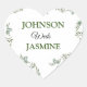 Autocollant de cœur d'invitation de mariage de feuilles de couleur d'eau verte
