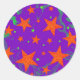 Autocollant à l'enrobée d'un arrière - plan tourbillonnant violet et vert parsemé d'étoiles magiques, orange et vertes. Un design personnalisable violet, vert et orange pour vous permettre d'ajouter vos propres textes, images et idées. Créé à l'aide de techniques numériques par Jess Perry.
