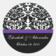 Notre damas noir avec un autocollant de mariage Eggplant Purple accent sont la touche parfaite pour vos invitations de mariage, notes de remerciement, wedding shower, ou la douche nuptiale faveurs. Objets correspondants disponibles dans notre boutique @ www.celebrateitweddings.com. Cet article est disponible dans une variété de combinaisons de couleurs!