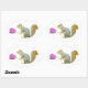 Un écureuil tient une fleur de tulipe rose sur ces stickers de printemps doux.