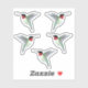 Des autocollants de colibris avec cinq colibris à gorge rubis. Le colibri à gorge rubis (Archilochus colubris) est un tout petit oiseau au dos vert émeraude, masque noir, couronne verte et gorge rouge vif. On le trouve dans les forêts ouvertes, les bords des forêts, les prairies, les prairies, les parcs, les jardins et les jardins où ils visitent souvent des mangeurs de colibris et des fleurs en forme de tube.