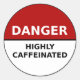 Danger - Highly Caffeinated - autocollant d'avertissement en rouge, blanc et noir.