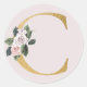 Autocollant à initiales dorées de roses printanières lettre C
