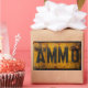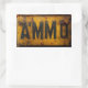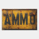 Autocollant AMMO dans un style patiné de panneau métallique en détresse.