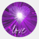 Design moderne avec un coeur brillant, violet et blanc brillant sur un arrière - plan violet, blanc et noir brillant. Sticker avec un design personnalisable violet, noir et blanc pour vous permettre de personnaliser avec votre propre texte, images et idées. Créé par Jess Perry à l'aide de photographies originales et de techniques numériques.
