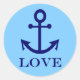 Un arrière - plan bleu clair, une ancre et un texte bleu marine rendent cet autocollant parfait pour fermer votre faire-part de mariage nautique.... ou à utiliser sur votre faveur de mariage aussi!