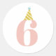 Un autocollant anniversaire de enfant moderne et amusant avec un grand âge personnalisable avec casquette rayé.