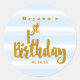 Autocollant aquarelle doré et bleu pour 1er anniversaire. Personnalisez avec le texte de votre choix. Articles assortis dans ma boutique.