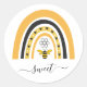 Autocollants arc-en-ciel d'abeille douce. Parfait pour les autocollants de pot de miel, les autocollants de sucreries et autres pâtisseries. Jaune or et noir mignons.