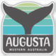 Un design audacieux et accrocheur célébrant Augusta, dans la région du Grand Sud de l'Australie-Occidentale. Cette oeuvre présente une silhouette saisissante d'une queue de baleine contre un arrière - plan océanique turquoise et vivant.