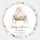 Ajoutez une touche douce et élégante à votre baby shower avec cet autocollant rond Baby in Bloom représentant un berceau à l'aquarelle, des fleurs neutres et un script boho doux. Parfait pour sceller des enveloppes, décorer des sacs de faveur ou personnaliser des boîtes à cadeaux, cet autocollant apporte charme et coordination à votre événement. Personnalisé avec le nom de l'invité d'honneur et la date, c'est un détail final magnifique pour un baby shower moderne rustique ou botanique.