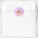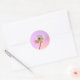 Photographie de la marguerite blanche de gerbera contre un arrière - plan rose électrique imprimé sur un autocollant rond.