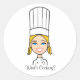 Autocollant mignon avec une fille de boulanger de chef. C'est un grand autocollant pour n'importe quel amant culinaire, ou ce serait une grande addition à n'importe quelle partie orientée de chef d'enfants. Beaucoup de styles et de produits de bande dessinée de chef disponibles chez zazzle.com/shopdesigns.