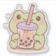 Un autocollant amusant kawaii frog sirotant du boba, parfait pour les ordinateurs portables, les journaux ou les bouteilles d'eau.