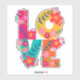 Transformez n'importe quoi en un petit panneau de bonheur. Cet autocollant LOVE floral coloré mélange l'art floral boho et la typographie ludique pour dégager de la chaleur et de bonnes vibrations. Des fleurs éclatantes remplissent chaque lettre, faisant fleurir votre ordinateur portable, votre journal ou votre bouteille d'eau avec positivité et énergie joyeuse.