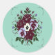 Personnalisez vos enveloppes, cadeaux ou carnets avec cet autocollant élégant au design floral raffiné. Ce motif présente un bouquet de roses bordeaux et de pensées lilas sur un fond vert d'eau délicat. Disponible en plusieurs formes pour s'adapter à toutes vos envies créatives.