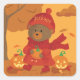 Un autocollant mignon avec l'illustration fantaisiste d'un ours brun qui ramasse un citrouille lors d'un beau jour d'automne. Personnalisez-le avec le nom de l'enfant ou retirez-le complètement. © ArianeC Illustrations-Tous droits réservés