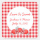 Ce chevalet de buffet à bonbons rouges comporte des bonbons rouges et des en vichy rouges et blancs. Parfait pour personnaliser vos sacs de bonbons mariages.