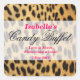 Sticker empreinte de léopard Candy Buffet. Idéal pour les buffets de bonbons ou les tables de cupcake aux mariages, fêtes d'anniversaire, Baby showers, communion, confirmations et bien plus encore! Le design présente un empreinte de léopard arrière - plan en noir et or. Le libellé, la couleur du texte et le style peuvent être changés dans le menu "Personnaliser". parfait pour les soirées à thème animalières ou safari