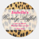 Sticker empreinte de léopard Candy Buffet. Idéal pour les buffets de bonbons ou les tables de cupcake aux mariages, fêtes d'anniversaire, Baby showers, communion, confirmations et bien plus encore! Le design présente un empreinte de léopard arrière - plan en noir et or. Le libellé, la couleur du texte et le style peuvent être changés dans le menu "Personnaliser". parfait pour les soirées à thème animalières ou safari