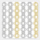 Un motif élégant de formes géométriques argent et or, liées dans une série de rubans linéaires en dentelle.