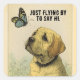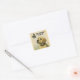 Une image douce et vintage d'un chiot regardant un papillon voler, est présentée sur cet autocollant carré. Avec le message "Juste en passant pour dire bonjour". fait de cet autocollant un excellent choix pour des envois spéciaux, la décoration, le scrapbooking et plus encore. Parfait pour les amateurs de nature, de papillons et de chiots !