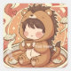 Autocollant carré de journal Cozy Hedgehog Coffee
