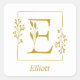 Joli sceau / autocollant avec cadre botanique dessiné à la main en or avec la lettre botanique E au centre. Personnalisez avec le nom