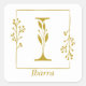 Joli sceau / autocollant présentant un cadre botanique dessiné à la main en or avec la lettre botanique I au centre. Personnalisez avec le nom