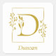 Joli sceau / autocollant présentant un cadre botanique dessiné à la main en or avec la lettre botanique D au centre. Personnalisez avec le nom