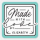 L'autocollant carré Made with Love Sticker présente une typographie moderne de 'Fabriqué avec Amour' dans un design d'étiquette. Le produit comprend un modèle pour personnaliser avec votre nom ou entreprise. Cliquez sur Personnaliser et personnalisez davantage pour changer la couleur de fond.