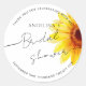 Autocollant carré pour enterrement de vie de jeune fille dans un design moderne, élégant et minimaliste avec une image de tournesol aquarelle ensoleillée.